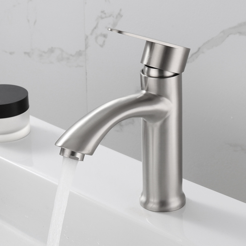 Pabrik langsung 304 baja tahan karat wastafel kamar mandi keran dingin tunggal bebas timbal disikat wastafel keran