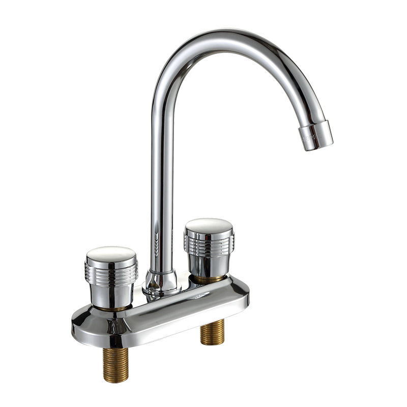 Grosir keran wastafel sambungan ganda keran panas dan dingin keran meja cuci katup pencampur keran Putar