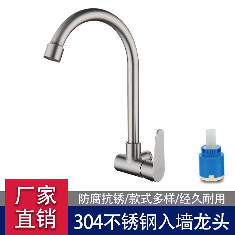 Keran wastafel tunggal stainless steel, keran wastafel dingin tunggal 304, keran stainless steel