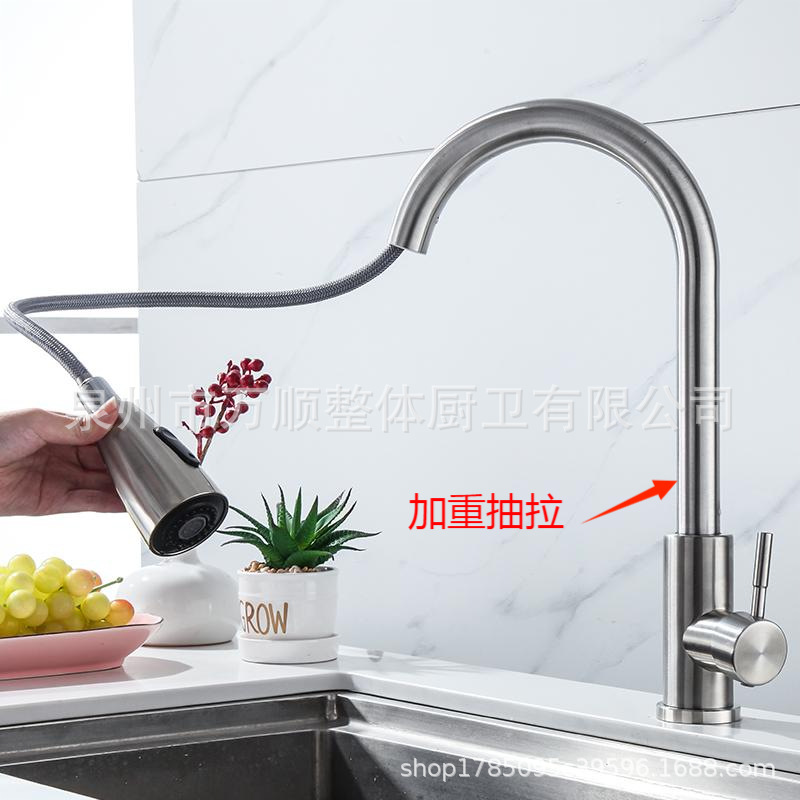 Keran dapur stainless steel 304, keran dapur, wastafel pull-out universal dapat ditarik panas dan dingin
