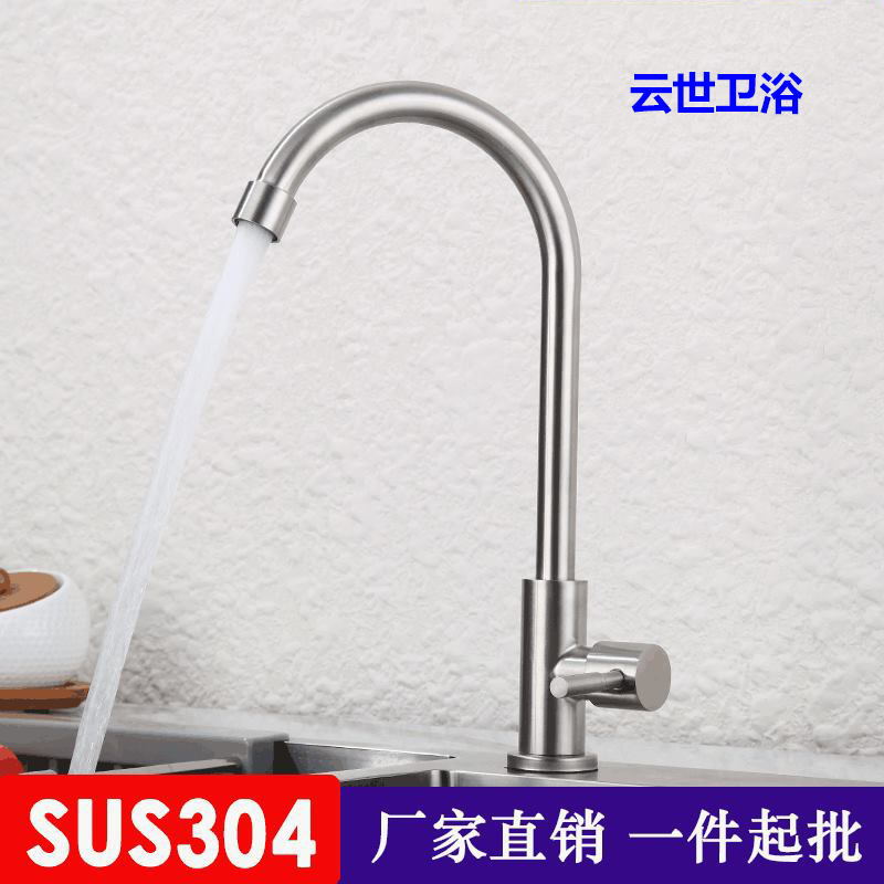 Keran teknik stainless steel, bak cuci kamar mandi rumah tangga dapat diputar satu air dingin sayuran dapur bak cuci