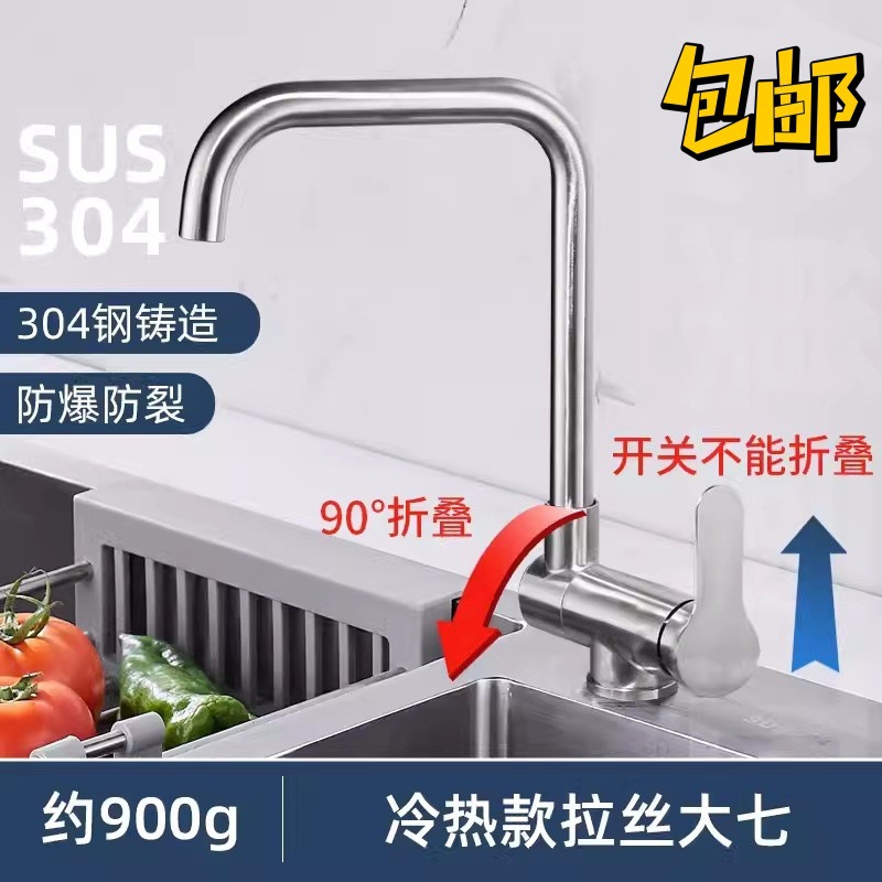 Keran wastafel dapur tahan karat, keran wastafel tahan percikan berputar keran wastafel panas dan dingin 304