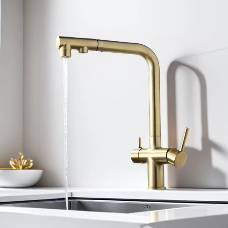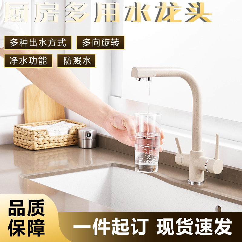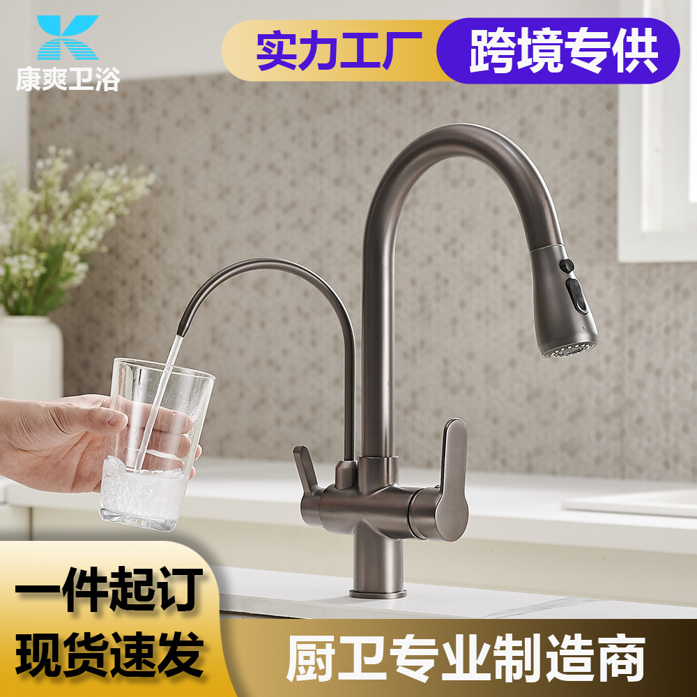 Keran dapur 360 dapat diputar, tiga tujuan, keran air murni, keran tarik, keran multifungsi, produsen lintas batas