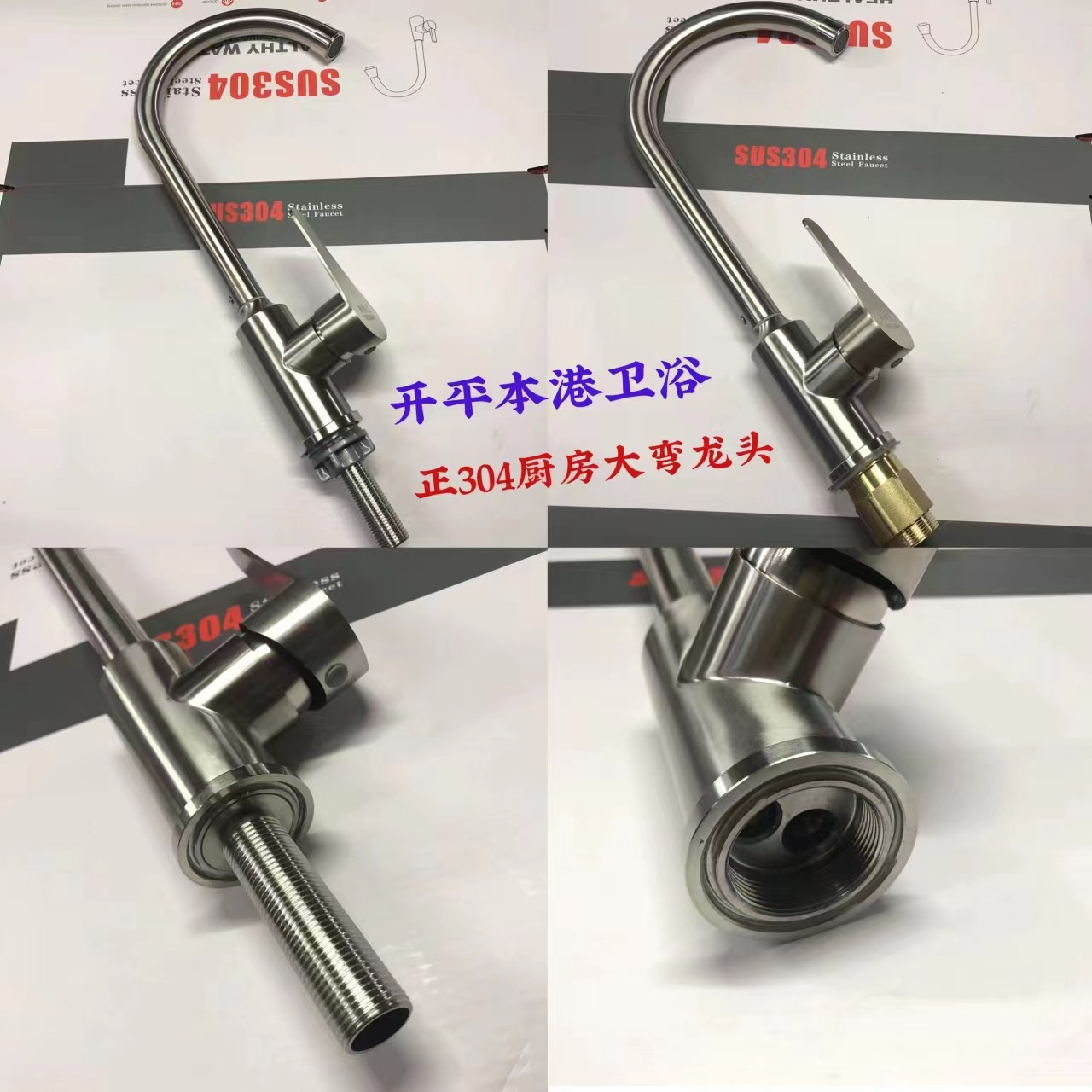Keran air panas dan dingin dapur stainless steel 304, keran dapur panas dan dingin, bak cuci sayuran Las eksternal, wastafel dingin tunggal, kaki panjang, melengkung