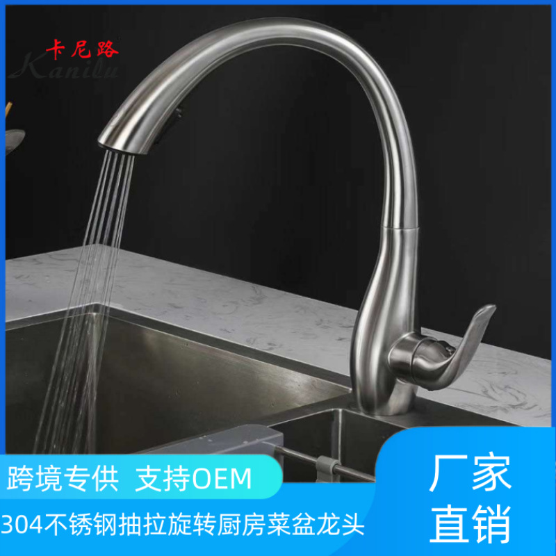 Keran stainless steel dapur, lintas batas 304 stainless steel interior dapur pull-out keran air panas dan dingin berputar multi-fungsi penjualan langsung pabrik