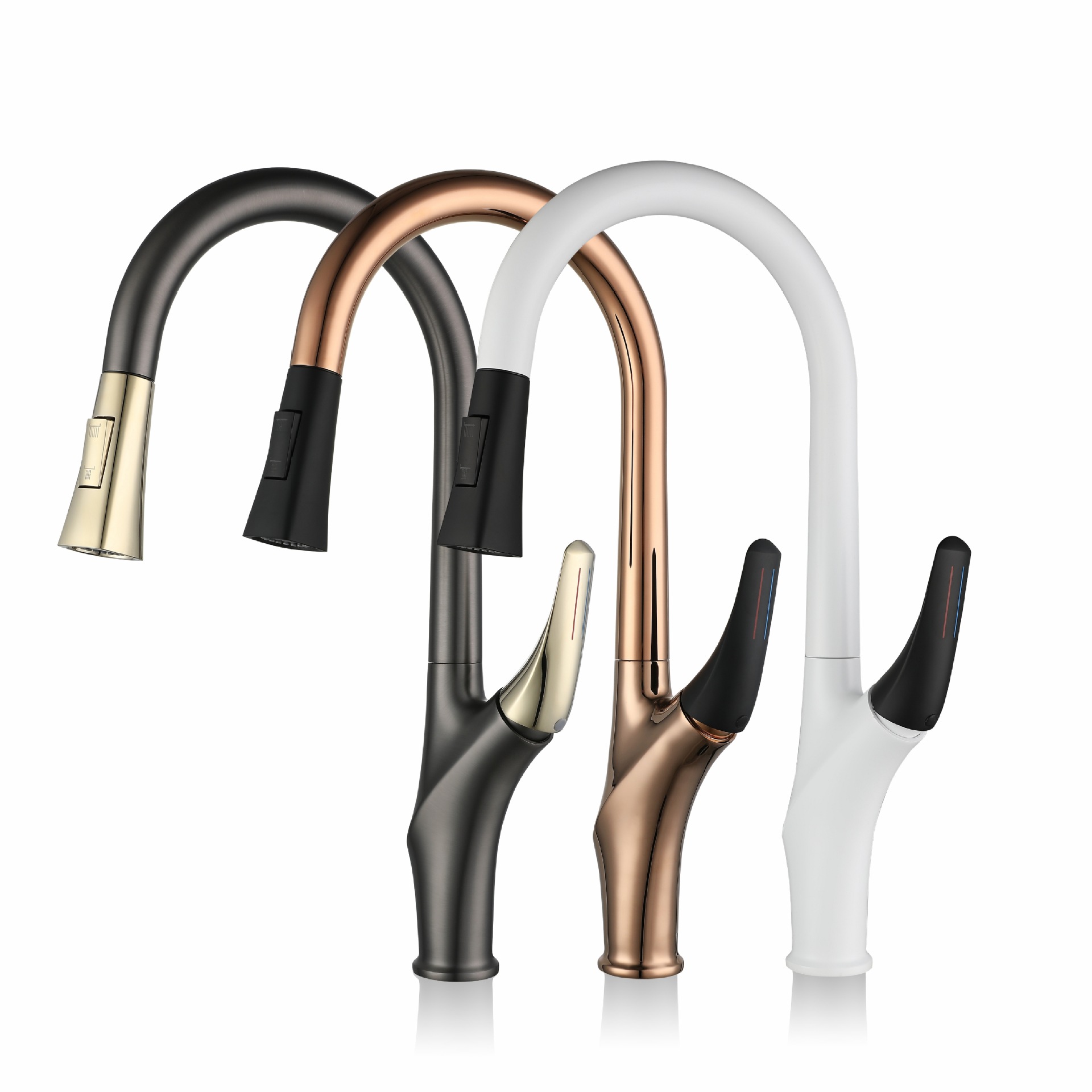Pabrik sumber keran air panas dan dingin berkualitas tinggi, wastafel dapur warna-warni personalisasi, model tarik keluar, tembaga penuh, untuk perdagangan lintas batas Amerika Utara