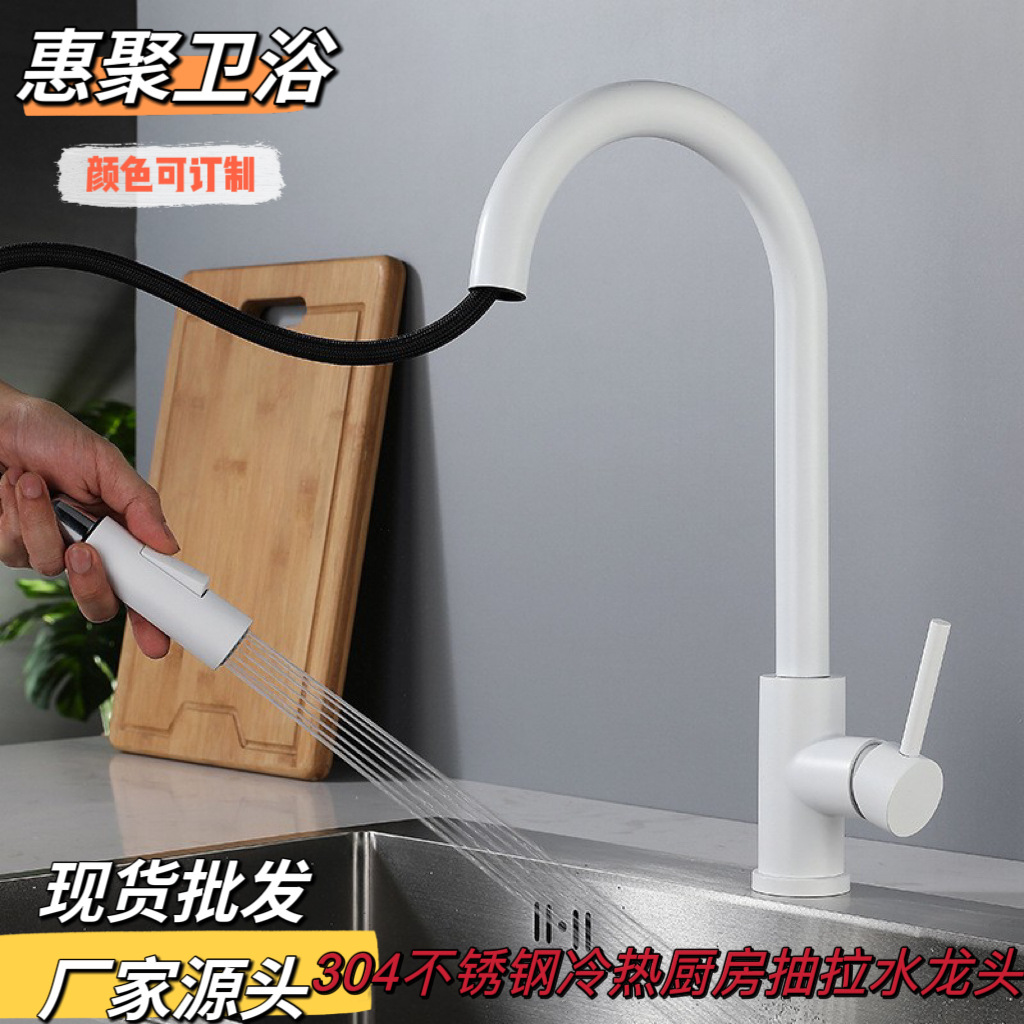 Dapur lintas batas Guangdong tarik keluar keran tahan percikan bak cuci panas dan dingin keran tarik pemurni air berputar putih