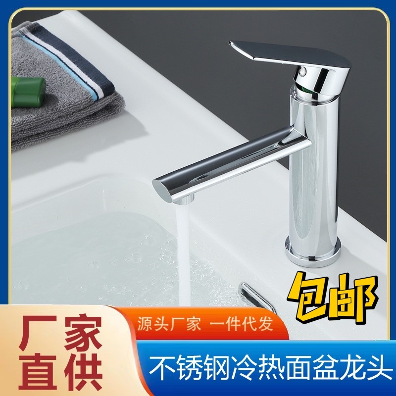 跨境单冷水龙头不锈钢高款304面盆龙头卫生间台上洗脸盆洗漱台