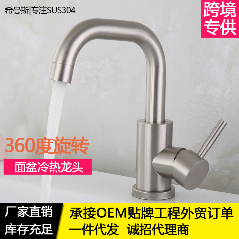 Keran stainless steel, keran stainless steel 304 e-commerce, lubang tunggal, keran air panas dan dingin, keran wastafel tangan berputar