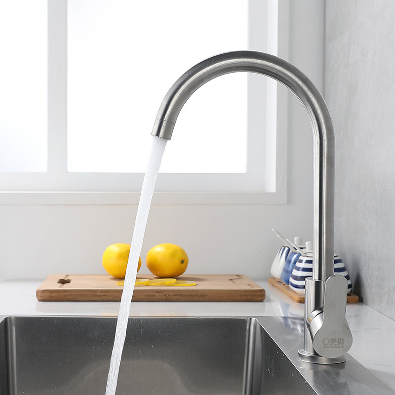 Keran wastafel dapur stainless steel, keran wastafel dingin panas dan dingin tunggal 304 keran universal