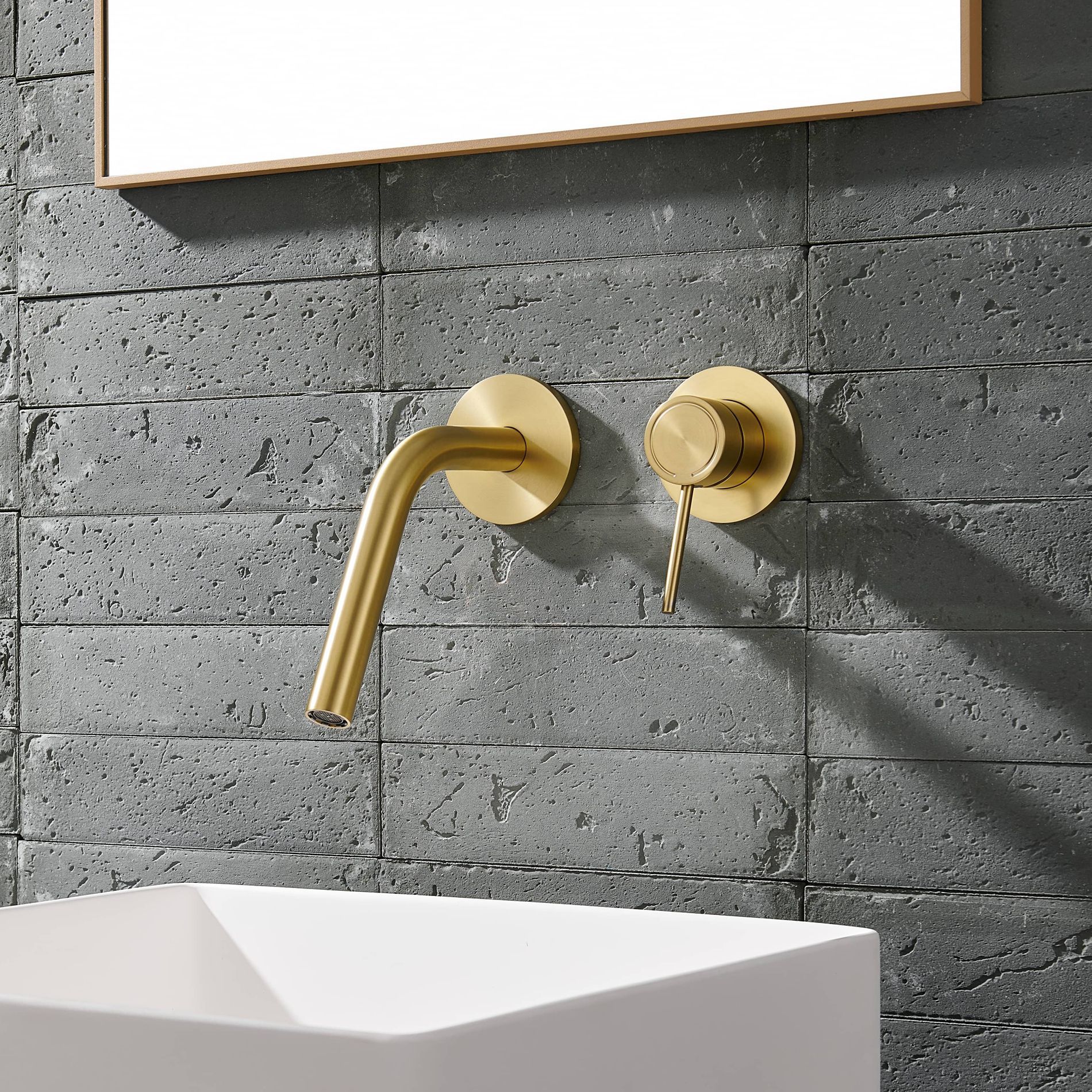 Baskom Tersembunyi Warna Emas Berkawat Tembaga Baskom Cuci Wajah Tipe Dinding Keran Panas dan Dingin