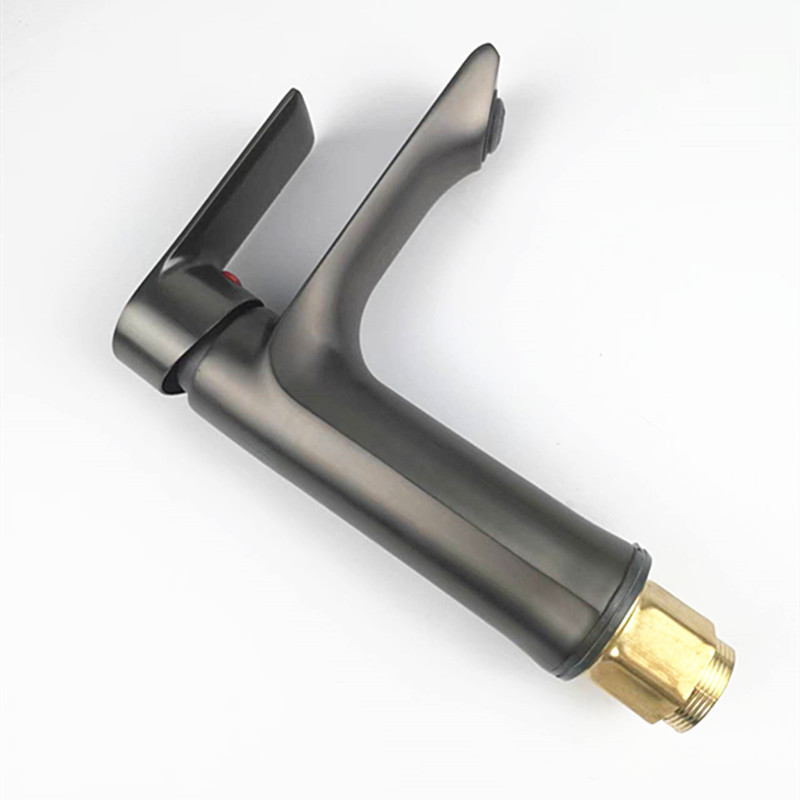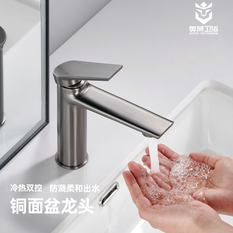 Produsen keran wastafel panas dan dingin kamar mandi konter bak cuci lubang tunggal campuran air dasar tembaga abu-abu