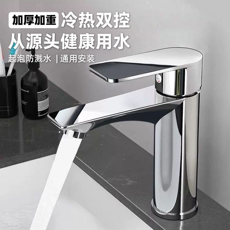 Keran panas dan dingin badan tunggal tembaga, keran panas dan dingin untuk kamar mandi, keran bak cuci kabinet kamar mandi rumah tangga