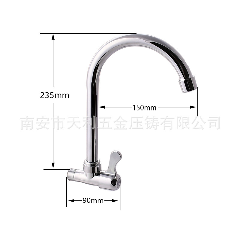 入墙横式洗菜盆水龙头 合金4分单冷大弯水龙头 洗菜盆水槽水龙头