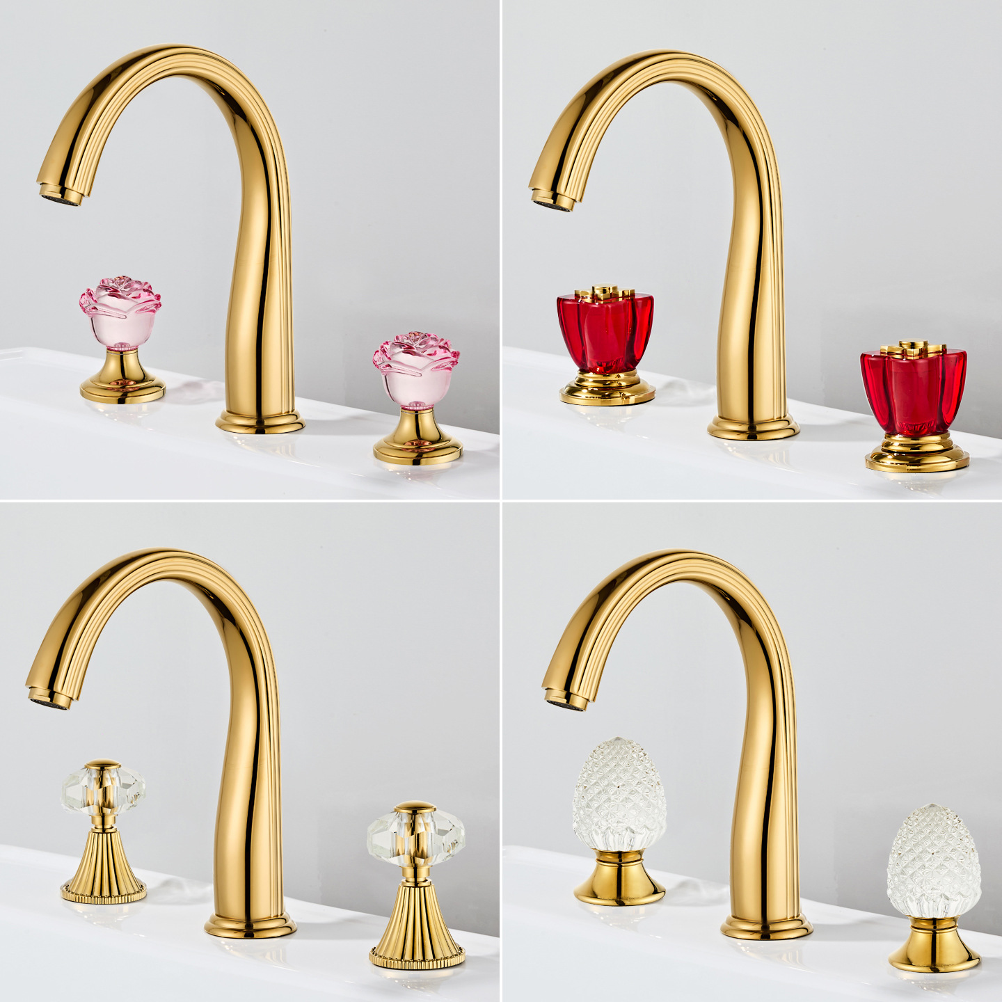Keran Baskom Tiga Lubang Kuningan Mewah Mewah Prancis Keran Panas dan Dingin Emas Mewah Kristal Gaya Eropa Tiga Lubang Tangan