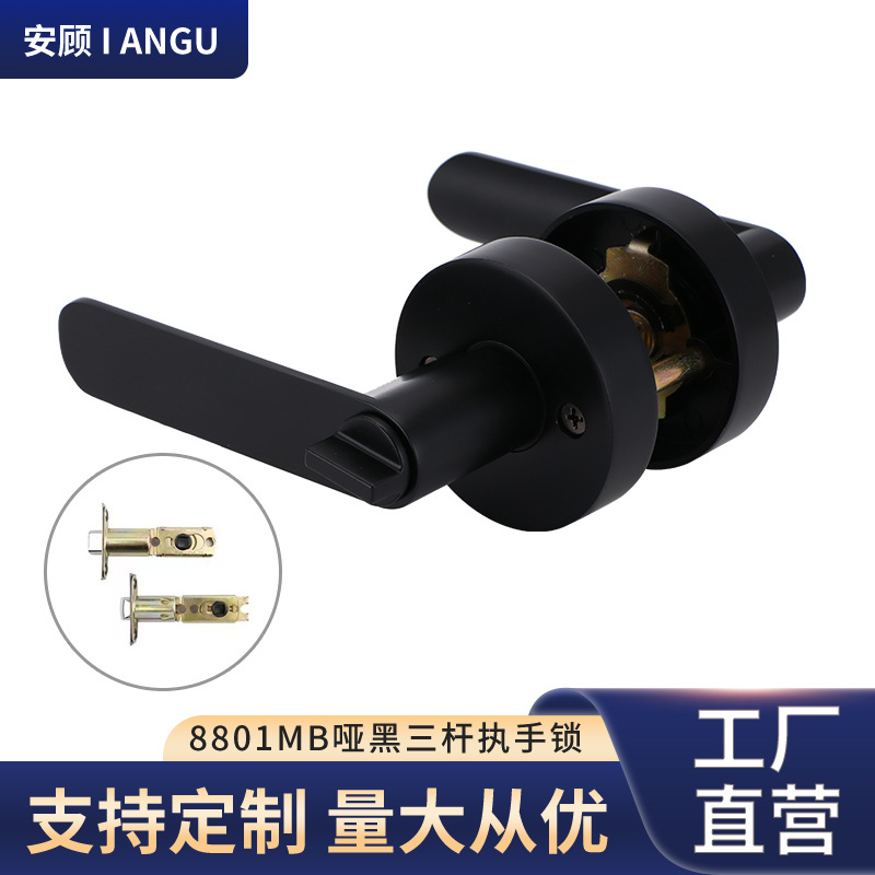 Kunci pintu ruangan, Matte hitam dalam ruangan aluminium Aloi kamar tidur pegangan sederhana kunci tiga tiang gagang bola grosir