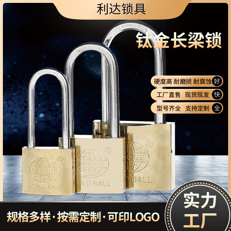 Lida kunci pintu anti selip titanium, kunci pintu anti Maling, kepala pintu, kunci kabinet gembok titanium lapis emas, kunci balok panjang