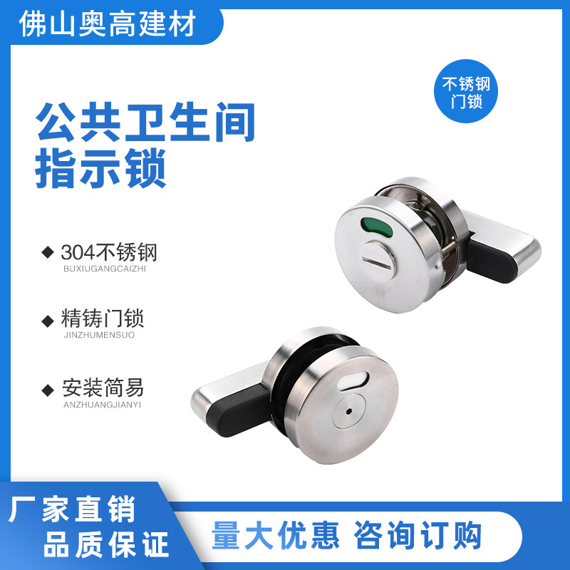 Aogao kunci pintu partisi OD-2 barang asli kamar mandi baja tahan karat dengan kunci indikator merah tak berawak dan hijau