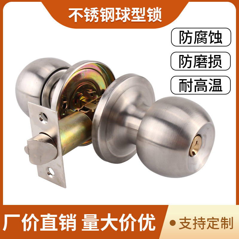 Kunci pintu kayu stainless steel, kunci bola stainless steel, pintu toilet rumah tangga, kunci kuno, kunci universal, kunci pintu bulat