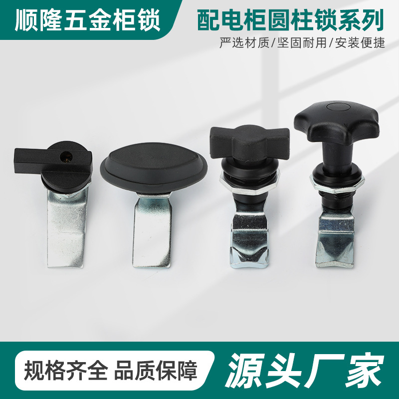 Kunci putar pintu kabinet berkas plastik hitam, kunci pintu kabinet sasis mekanis dengan pegangan peralatan industri kunci Putar