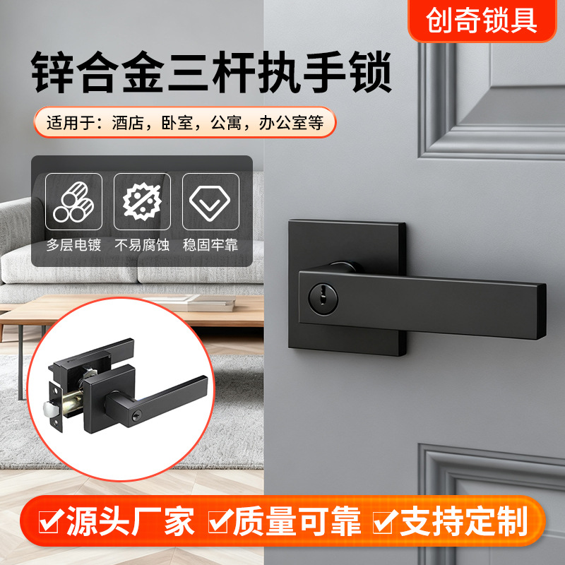 Harga grosir langsung pabrik kunci pintu pegangan campuran seng kualitas tinggi kunci pintu pegangan berat semua hitam 561