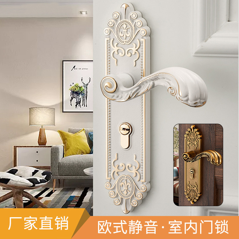 Kunci pintu gaya Eropa tidak bersuara universal, kunci pintu kayu dalam ruangan kunci kamar tidur pegangan mekanis produsen kekuatan