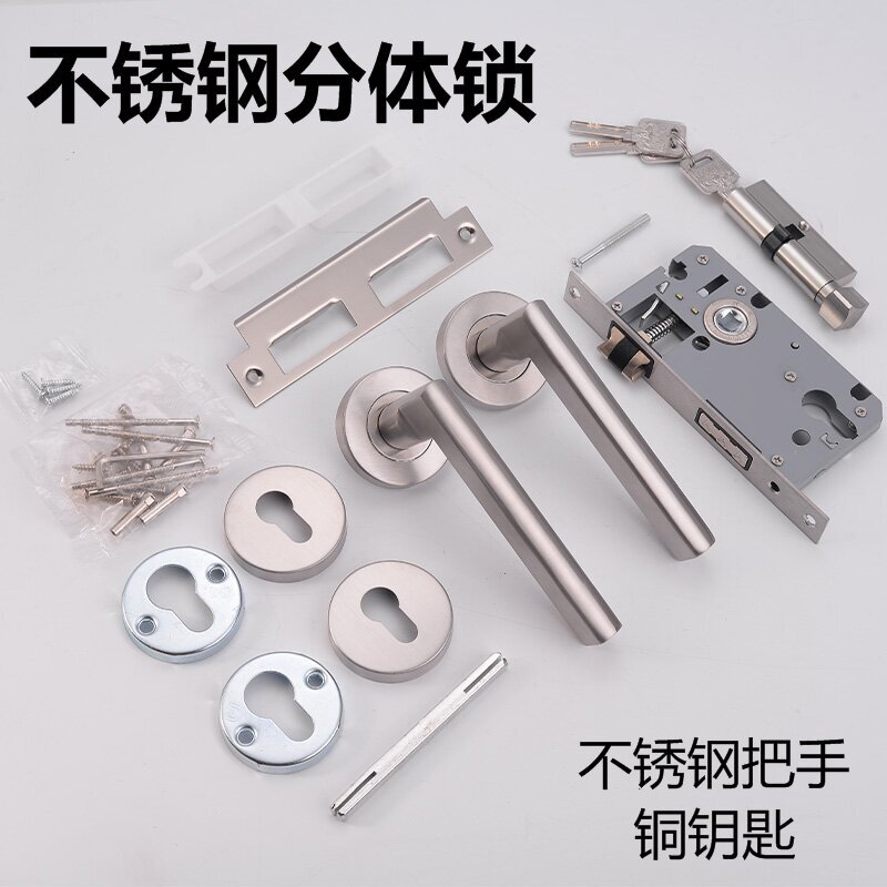 Stainless Steel Lidah Tunggal Kunci Dua Lengket Pintu Tahan Api Ganda Pintu Tangan Kunci Kamar Tidur Kamar Mandi Pintu Kayu Pegangan Pabrik Grosir