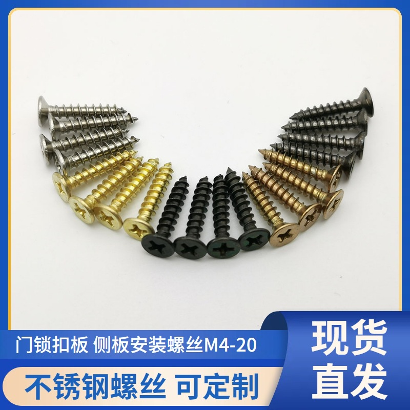Sekrup kunci pintu M4-20 kepala countersunk hitam, aksesori perangkat keras sekrup baja tahan karat khusus badan kunci pintu 4 buah satu paket