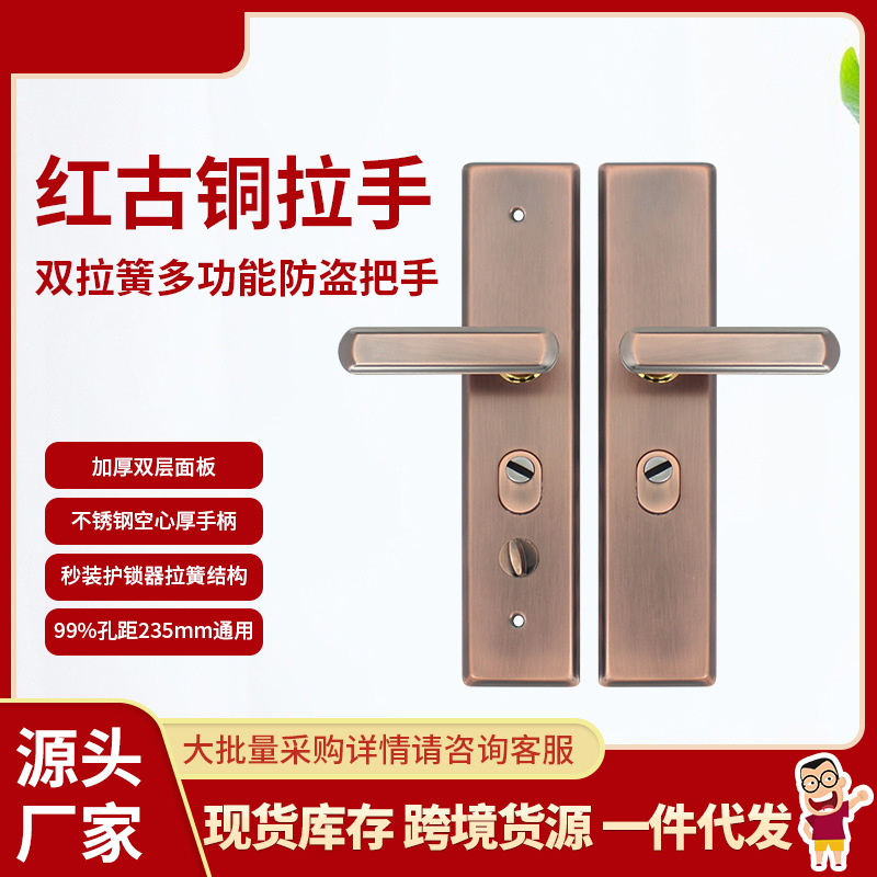 Produsen panel kunci pintu universal multifungsi, pegangan pegas tegangan ganda kuno merah anti-maling untuk rumah tangga
