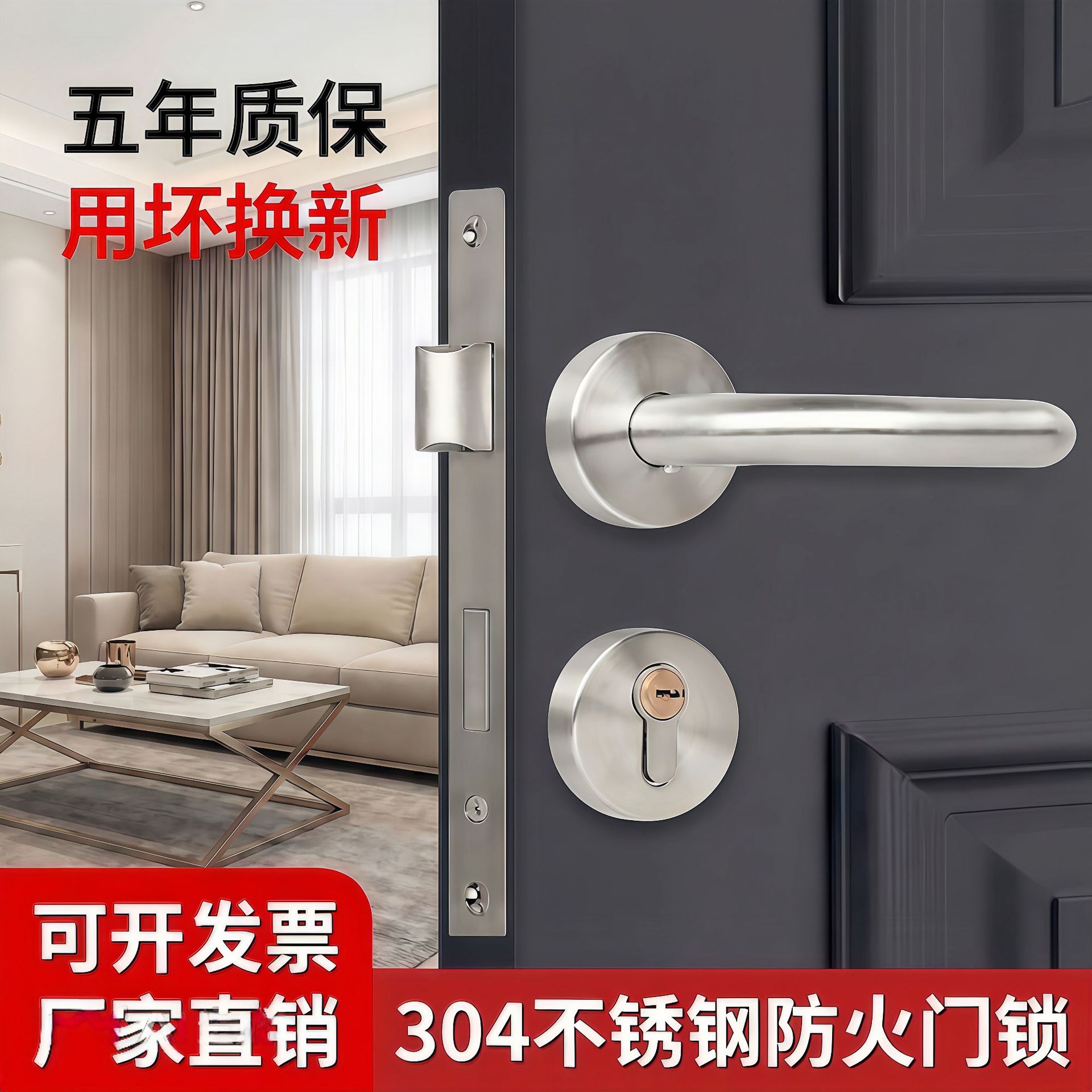 Kunci pintu api standar Eropa kunci split 304 baja tahan karat kunci pintu api kantor kunci rumah sakit kunci menangani 7255 tubuh