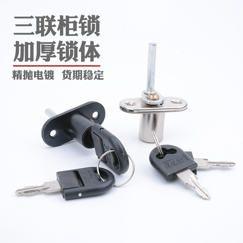 Kunci laci meja kantor, tiga buah kunci tebal badan paduan seng kunci kabinet laci kantor kunci tiga potong grosir