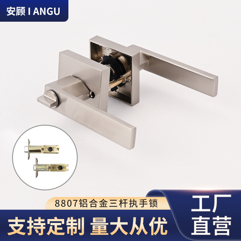 Kunci pegangan lampu persegi mewah, gagang kunci rumah tangga tiga tiang, kunci ringan sederhana untuk kunci pintu kamar mandi