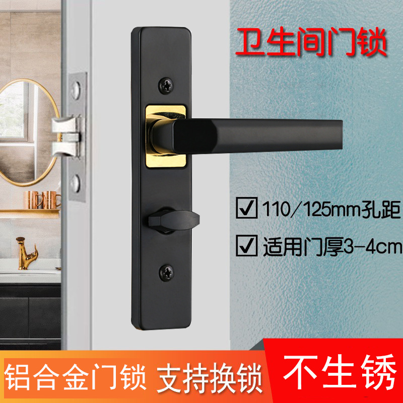 Kunci pintu kamar mandi, kunci pintu kamar mandi hitam tebal paduan aluminium satu lidah tanpa kunci pegangan pintu kamar mandi Hitam