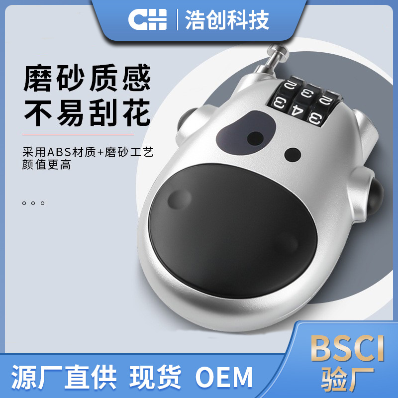 Kunci helm kawat baja portabel, kunci mobil portabel kabel Baosteel portabel kartun sapi merenggang, kawat baja