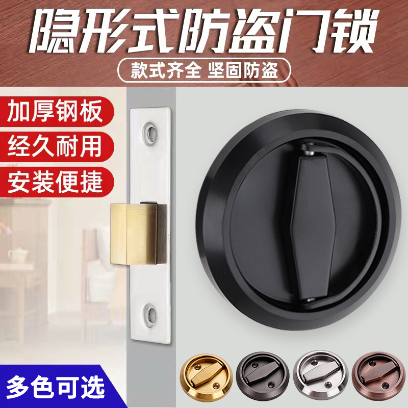 Kunci pintu tanam tersembunyi baja tahan karat hitam tebal pintu kamar mandi tidak terlihat kunci cincin tarik bulat kunci pegangan tersembunyi