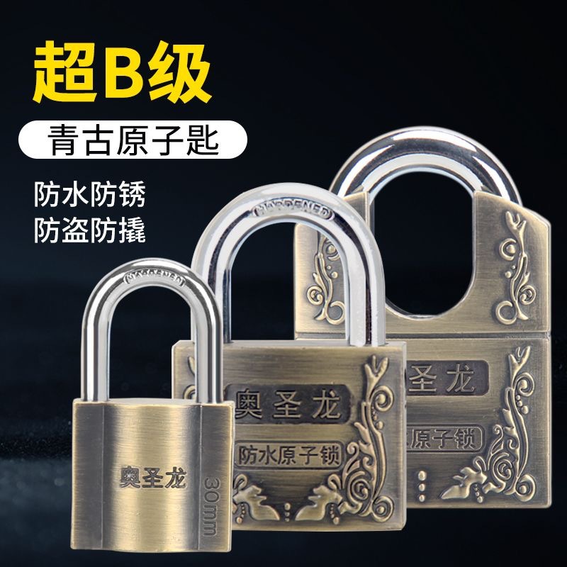 Gembok warna tembaga antik gembok anti air kunci kecil anti karat pintu gudang besi anti cungkil kunci empat atom kunci inti tembaga