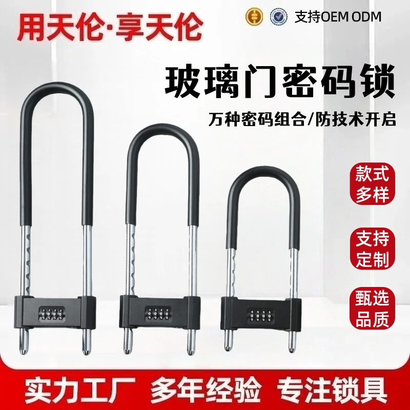 Gembok anti-pencurian berbentuk U untuk pintu kaca kantor dan toko, kunci ganda, keamanan tinggi, kunci sandi yang stabil dan tahan lama.