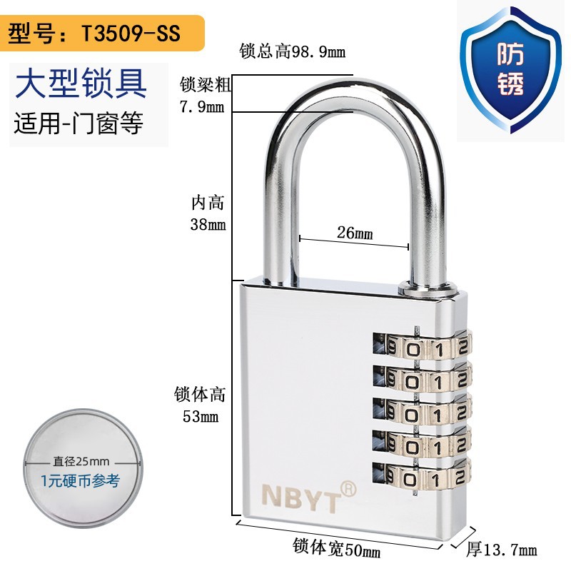 NBYT kunci pintu stainless steel, gembok luar ruangan anti karat, anti hujan, kunci tembaga