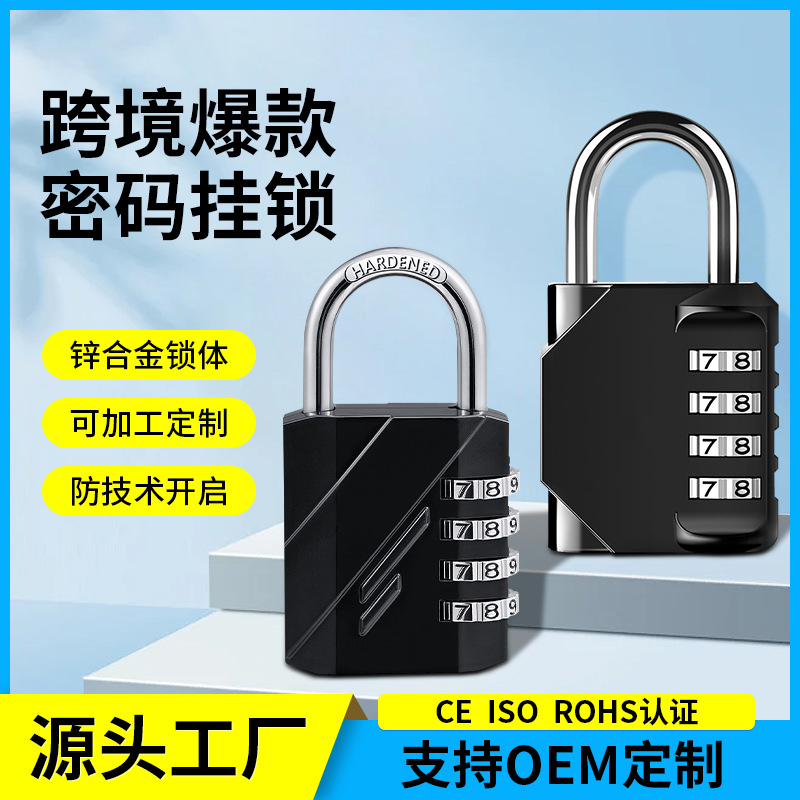 Kunci kata sandi lintas batas grosir logam campuran seng 4-digit kunci mekanis kunci tas gym kunci kata sandi gembok