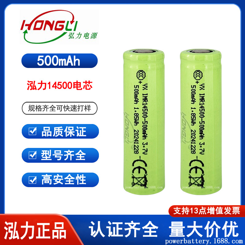 Hongli 14500 Baterai Lithium 3.7V 500mAh Kepala Datar Listrik Sikat Gigi Kepala Runcing Mouse Lampu Dinding Hongli