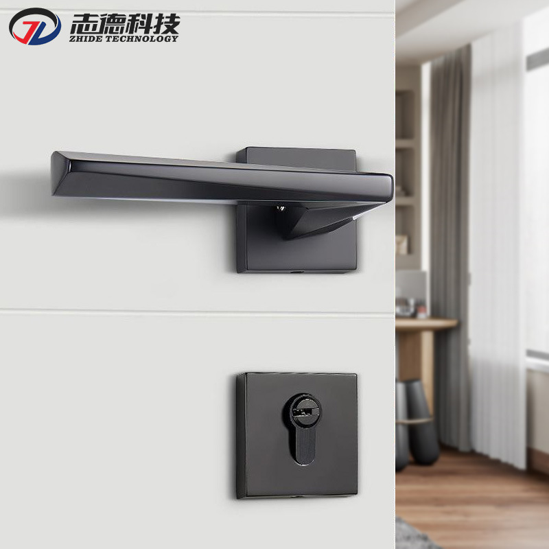 Kunci pintu hitam dalam ruangan, untuk kamar tidur, kunci pintu kayu sederhana, kunci split magnetik, hisap, kunci senyap, kunci Aloi seng