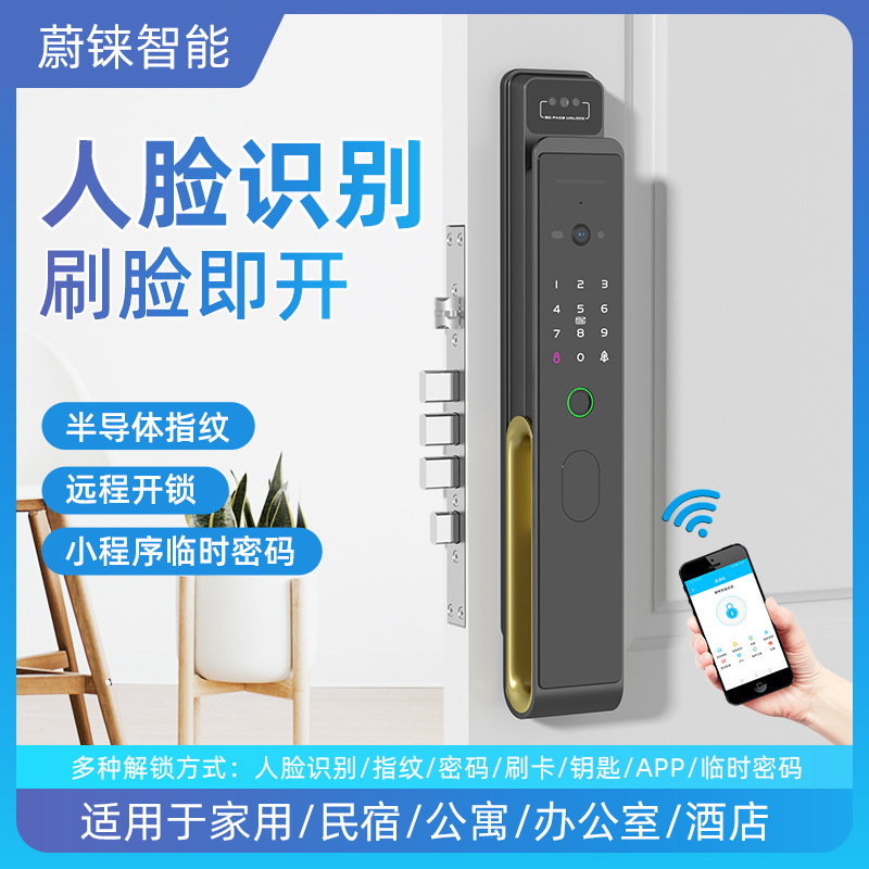Kunci pintu rumah tangga, kunci pintu pintar sidik jari otomatis, remote control, kunci kata sandi, anti Maling, pengenalan wajah visual