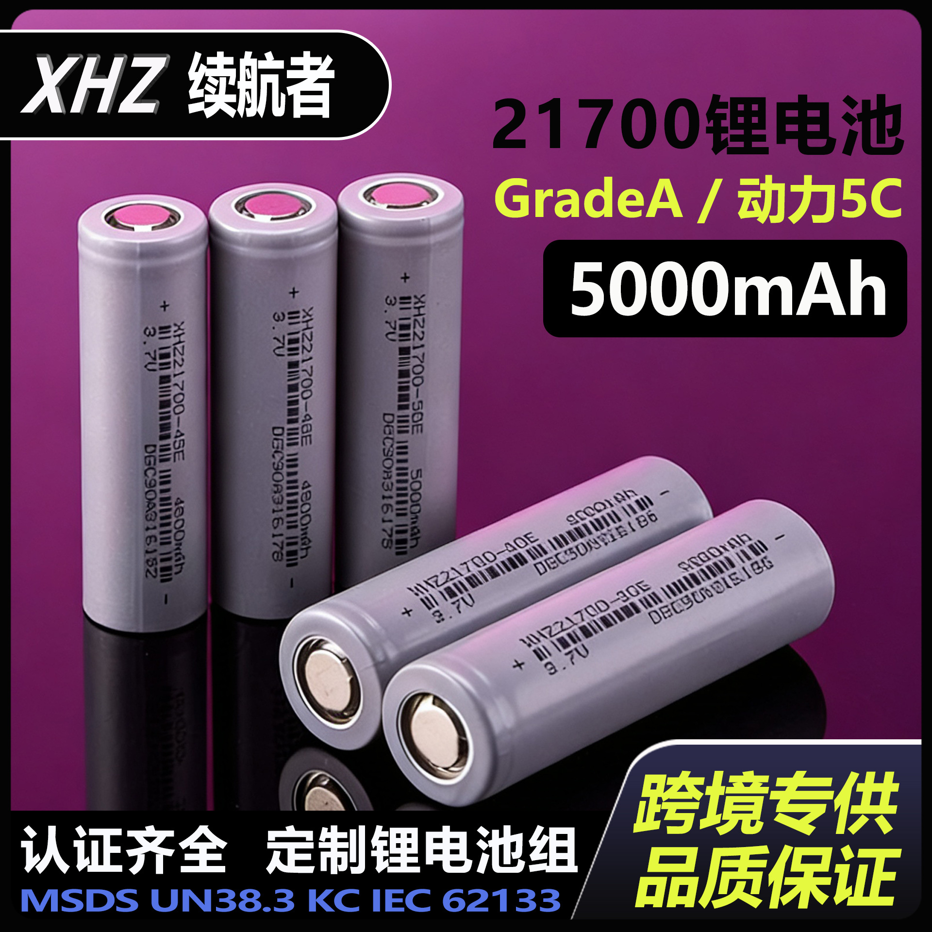Produsen dalam stok 21700 baterai lithium daya runcing 5000mAh senter bank daya baterai khusus isi cepat