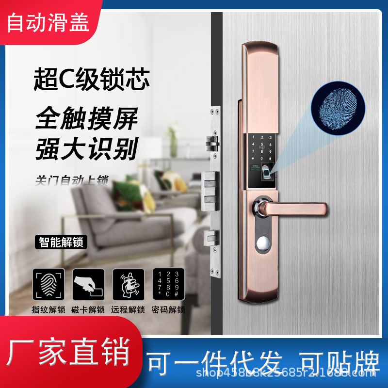Pabrik grosir H33 otomatis geser penutup kunci pintu rumah tangga anti-maling pintu elektronik Kata sandi kunci semi-otomatis kunci sidik jari