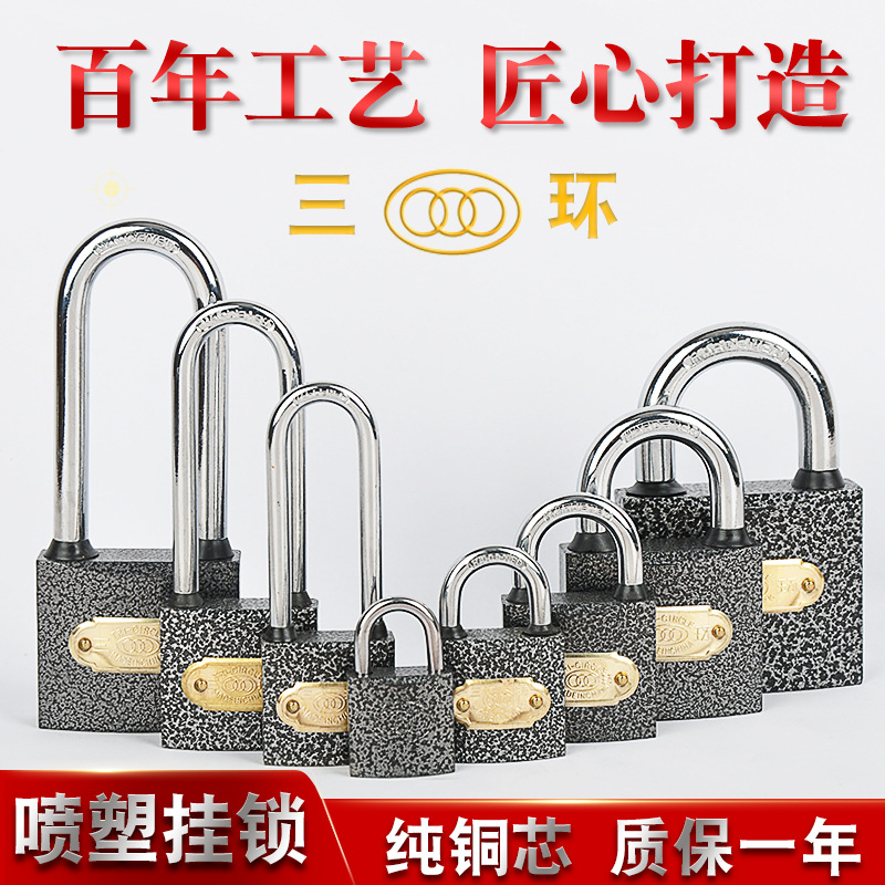 Gembok mobil abu-abu tiga cincin, gembok inti tembaga anti karat, kunci gudang Internet bar, kunci kecil untuk asrama