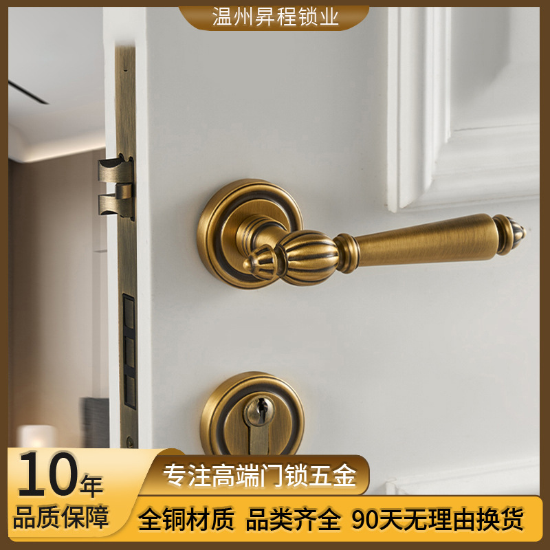Pasokan Pabrik Semua Tembaga Ringan Perancis Retro Kunci Pintu Kuningan Diam Magnetic Isap Kayu Pegangan Pintu Perunggu Perunggu Pegangan Tangan