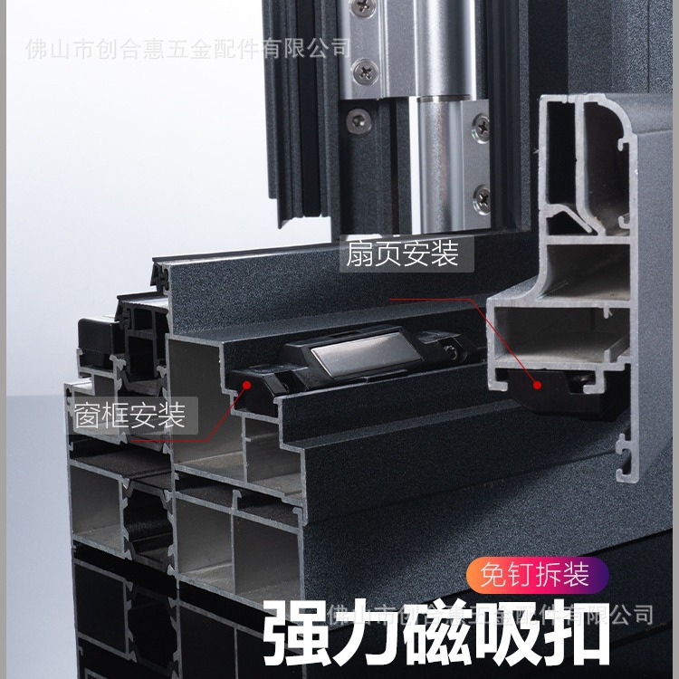 Kunci jendela hisap magnetik, gesper sudut sampel, gesper jendela, layar terintegrasi di jendela, kasa standar Eropa, kekuatan magnetik kuat, menutup perangkat, kunci jendela