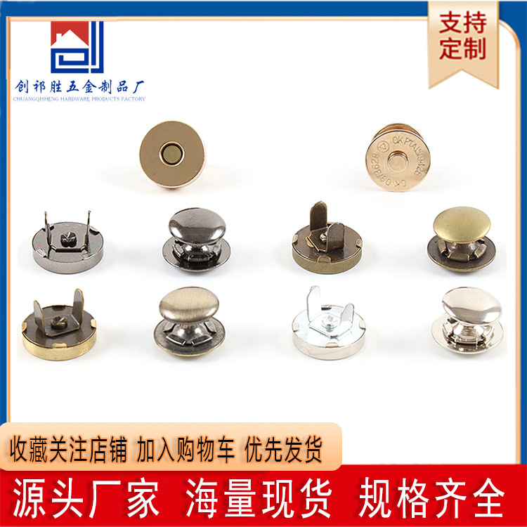 Cangkang tembaga tombol magnetik tipis, 10/14mm jahitan bebas tabrakan kuku magnet gesper tebal magnetik tas kunci tombol gelap kuku