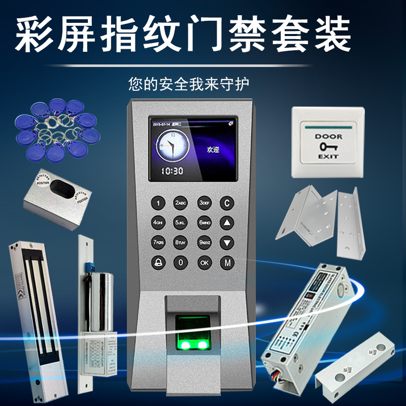 Mesin kontrol akses sidik jari, kunci magnetik steker elektrik kunci ID kartu kata sandi pintu kayu kontrol akses kehadiran semua dalam satu sistem cocok
