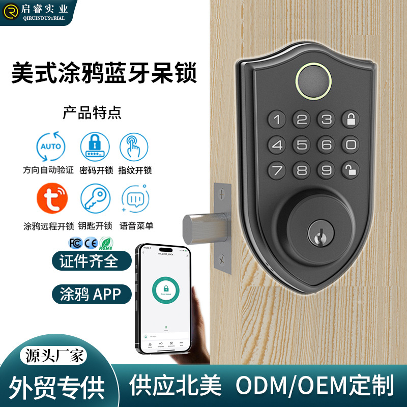 Smart TUYA kunci sidik jari, kunci pintu kayu besi kunci pintu bebas kabel kunci pintu kamar sewa kunci kepala banteng kuno anti-maling kunci pintu
